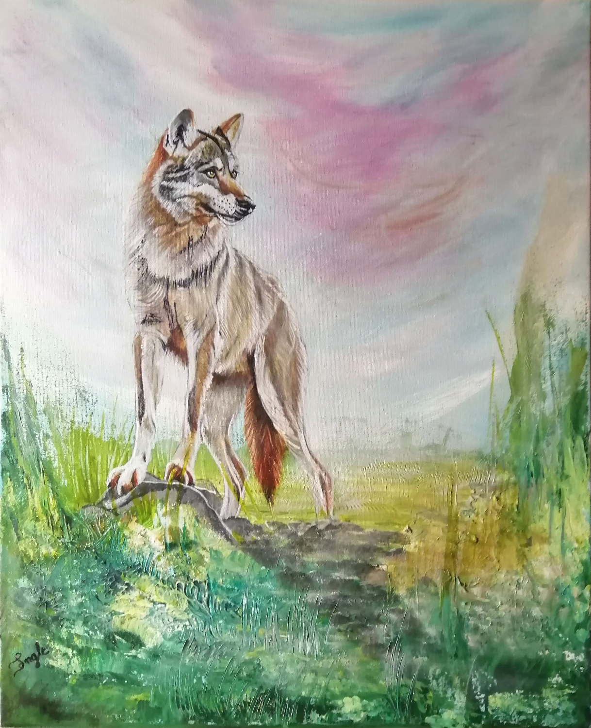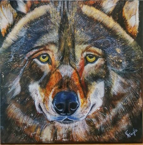 Les canidés ont là encore la priorité mais les grands félins et les oiseaux sont aussi célébrés dans quelques-uns de mes tableaux.
